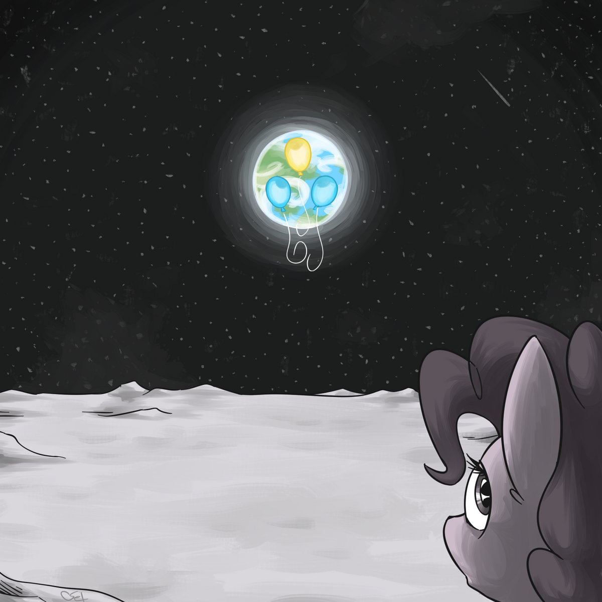 Ponyville to Pinkie Pie... Ponyville to Pinkie Pie... Seems you've left us, and we're all still wond'ring why Ponyville to Pinkie Pie... We still love you, don't you hide If this reaches you, you'll know just what to do... (Ponyvillians) This is Ponyville to Pinkie Pie Just wanted you to know That we miss you, and we wish that you were home But it's not our place to say where you should go (Pinkie) Seems that I've been lying to myself It's never been so hard And I think my hooves taken me too far Guess it's time I stopped and listened my heart (both) But here are we sitting at an impasse Trapped on the moon Rocket ship is gone and I'm not where I belong (Pinkie) Though I've tried convincing otherwise I'm feeling so alone Things aren't looking on the bright side anywhere If I just had some way home-- (Ponyvillians) --We'll take you there Pinkie Pie, the time has come It's not too late, so just hop on Are you ready, Pinkie Pie? Are you with us, Pinkie Pie? Can you hear us, Pinkie Pie? Can you-- (Both) Here are we flying home together Last glimpse of the moon Tragedy is gone, this is where we all belong